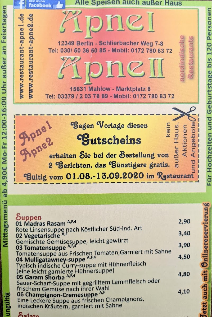 At Restaurant Apne Berlin, the vibrant essence of Indian cuisine comes alive at Schlierbacher Weg 7-9, 12349 Berlin. This charming eatery boasts an inviting atmosphere that captures the heart of Indian culture, making every visit a feast for the senses. The menu is thoughtfully curated, featuring dishes that resonate with authenticity. Diners rave about the garlic naan and aromatic soups that leave a lasting impression on the palate.